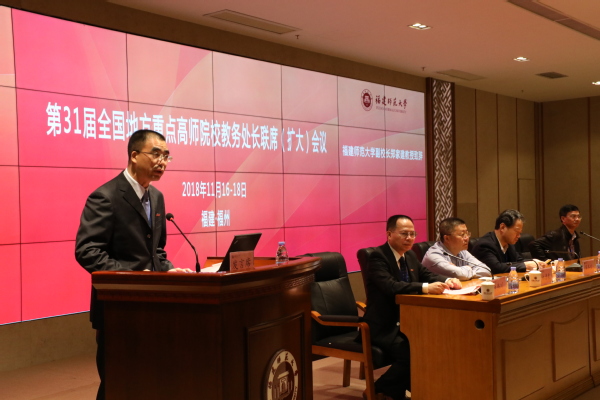 11月17日,由我校承办的第31届全国地方重点高师院校教务处长联席(扩大)会议在旗山校区宏达厅召开。省教育厅高教处处长林清泉、我校副校长郑家建,全国30个省(直辖市、自治区)40多所高师院校100多位代表,以及我校19个师范专业所在学院负责人、专业负责人和教学秘书参加了会议。