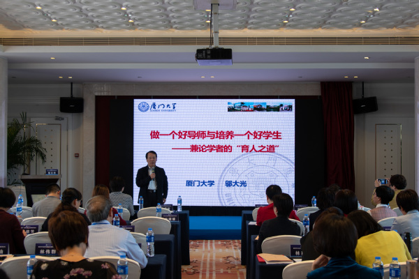 厦门大学原副校长邬大光教授应邀作题为《做一个好导师与培养一个好学生——兼论学者的“育人之道”》的专题讲座,从好老师解读、好学生解读、好课程解读等方面,深入浅出地阐释了好导师、好学生、好课程的理念内涵及形成之道,讲座引经据典、思想深刻、内容丰富、气氛热烈,引发与会人员的广泛共鸣。