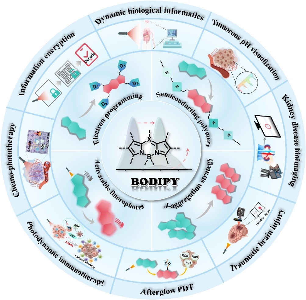 近日,我校杨震教授团队在期刊Advanced Functional Materials发表题为“Crucial Breakthrough of BODIPY-Based NIR-II Fluorescent Emitters for Advanced Biomedical Theranostics”的综述性文章。文章首先阐述了提升BODIPY分子NIR-II荧光的四种关键设计策略,主要包括电子编程策略、共轭骨架的扩展、J-聚集调控策略以及可激活荧光团的创制。随后系统介绍了基于NIR-II荧光BODIPY的纳米平台在重大疾病光诊疗中的应用发展。最后,本文对未来改进NIR-II BODIPY以满足不断演进的临床需求方向进行了全面概述,旨在推动其在医疗领域的持续发展与应用。