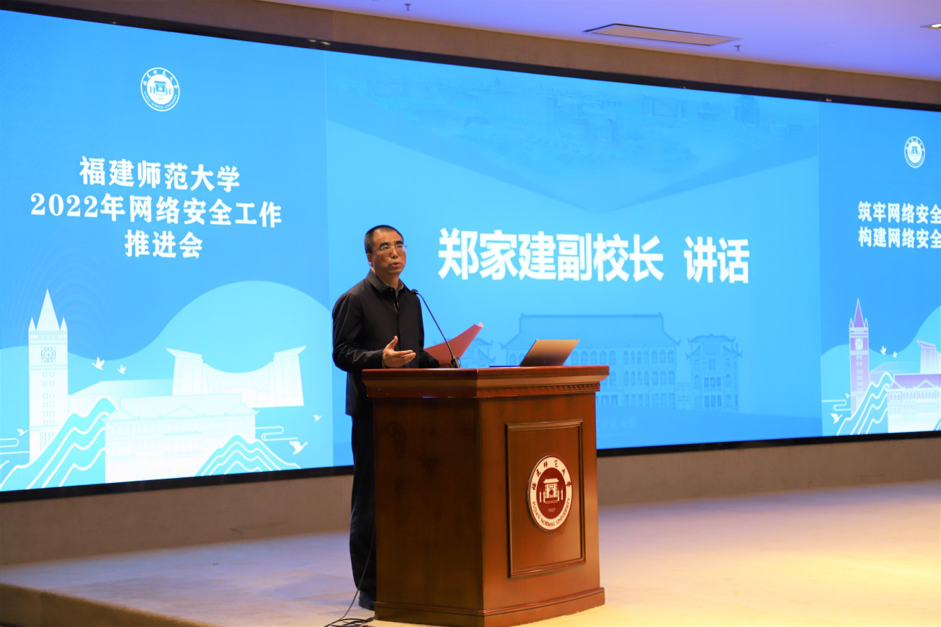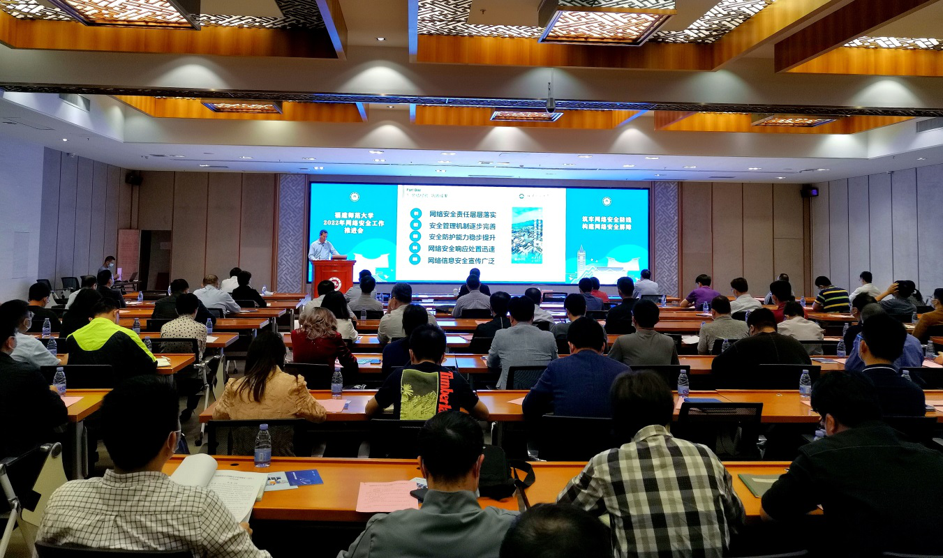 4月28日,我校在旗山校区宏达厅召开2022年网络安全工作推进会。副校长郑家建,各单位分管网络安全工作负责人、综合科(办公室)负责人参加了会议。