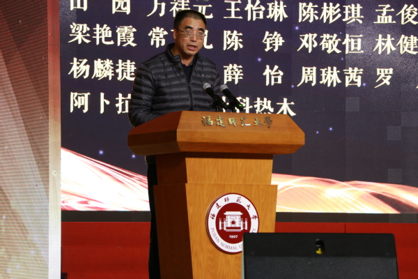 校党委书记李宝银作了热情洋溢的讲话。他回顾和总结了过去一年来我校各项事业发展成就以及广大同学在专业学习、科技创新、文化建设、爱校荣校等方面取得的丰硕成果。鼓励同学们积极向受到表彰的先进集体和个人学习,并对同学们的成长成才寄予殷切希望。一要胸怀理想,坚定信念,做志存高远之人。坚定听党话、跟党走的意志决心,与祖国发展同向同行,将激昂的青春梦融入伟大的中国梦,让蓬勃青春与家国情怀“同频共振”,让远大的理想指引人生的航船,不断乘风破浪、奋勇前进。二要心无旁骛,求知问学,做脚踏实地之人。珍惜韶华,求知问学,自觉“增负”,沿着求真理、悟道理、明事理的方向前行,在宝贵的大学时光里练就过硬的素质本领,努力实现德智体美劳全面发展。三要勇立潮头,追求卓越,做引领发展之人。勇立时代潮头,勇于创新创业,在建设社会主义现代化强国的征程中奋力先行,争做新时代的奋进者、领跑者、开拓者,成就新一代福建师大人的担当作为。