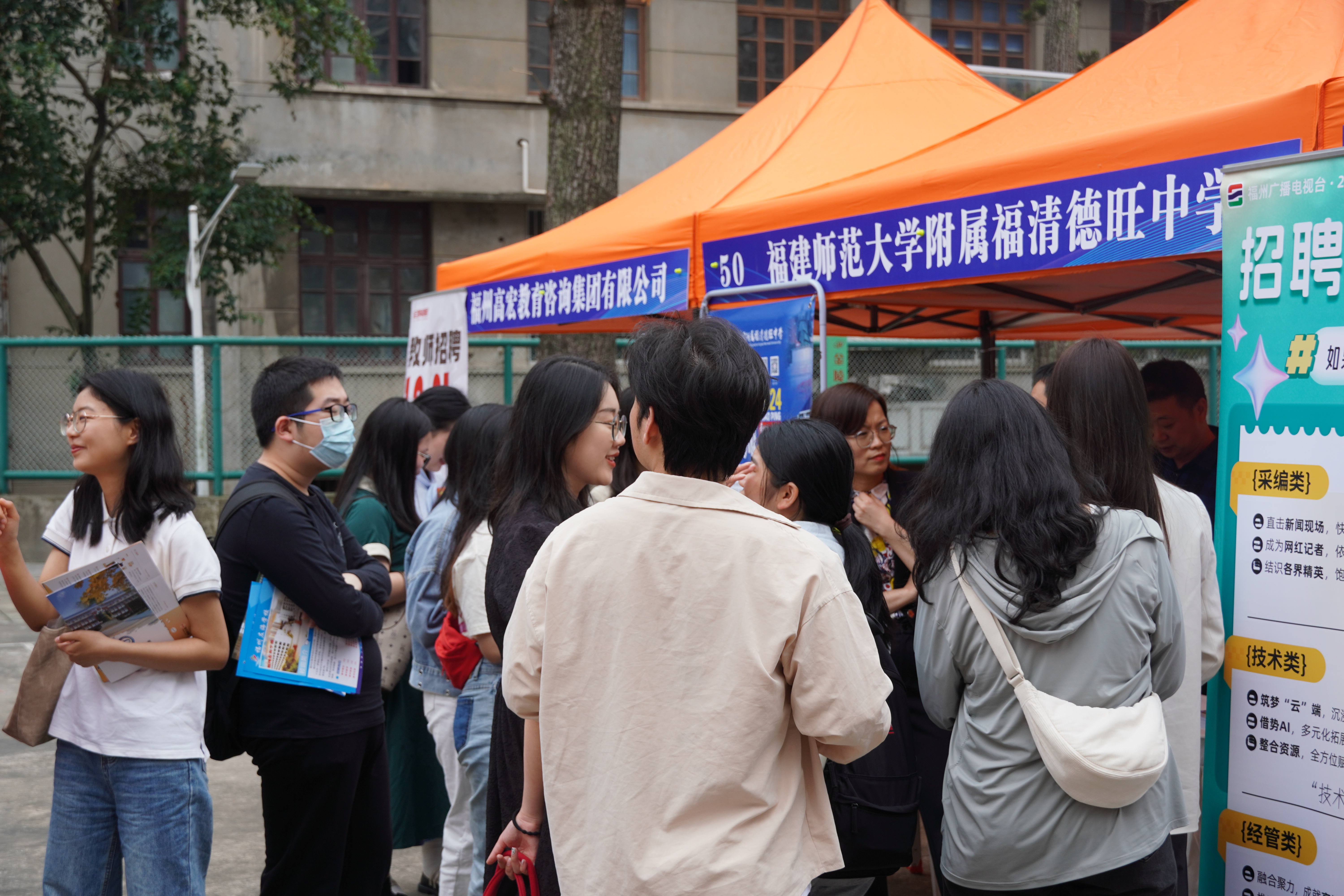 4月13日,由学生工作部(处)主办,外国语学院、教育学院、教师教育学院、文学院、海外教育学院、福建幼儿师范高等专科学校联合承办的专场招聘会在仓山校区物光篮球场举办,共吸引了用人单位62家,涉及教育培训、文化传媒、广告新闻、对外贸易等多个行业,累计提供就业岗位1400余个。