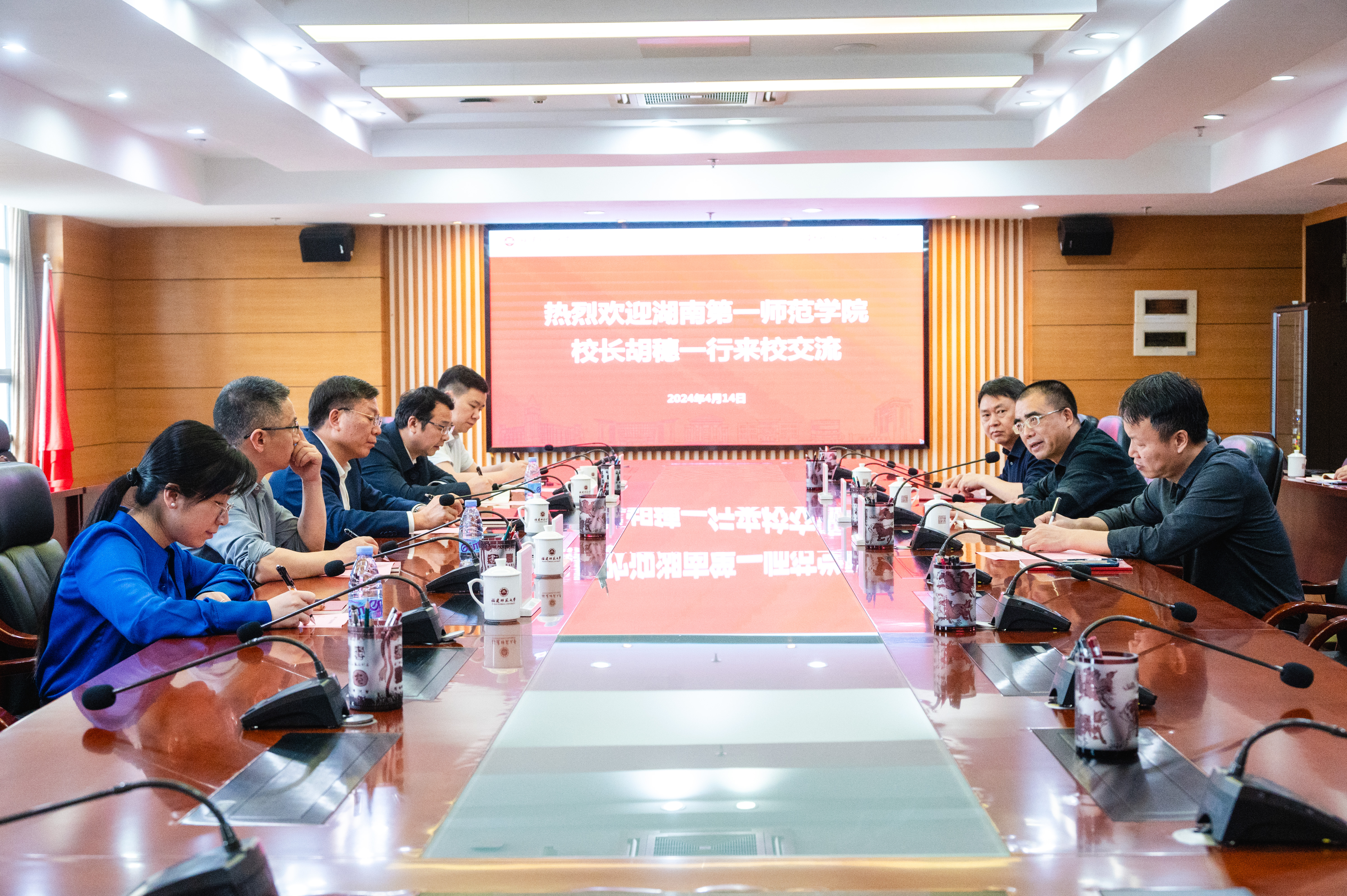 近日,湖南第一师范学院校长胡穗带领副校长彭晓辉及相关部门、学院负责人一行5人来校调研交流。校长王长平、副校长郑家建,学校相关职能部门负责人陪同调研。