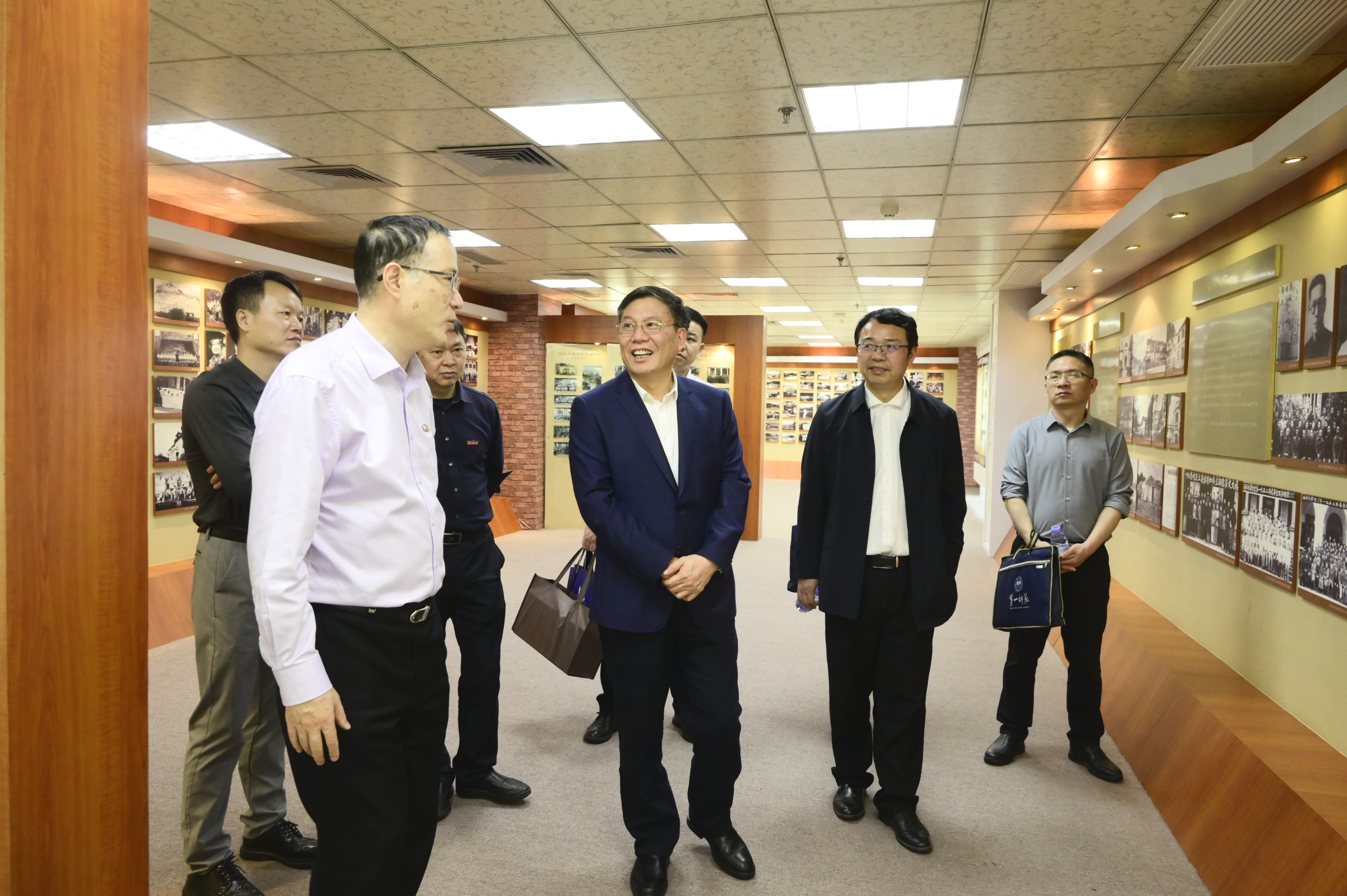 王长平会见了胡穗一行,并陪同参观学校校史馆。郑家建主持召开座谈会,代表学校对胡穗一行的莅临表示热烈欢迎,并介绍了我校本科教学基本情况,一流专业、一流课程建设经验以及协调提质工作开展情况,希望两校以师范教育协同提质计划为纽带,在专业建设、教学资源共享、教育教学改革等方面持续深化交流,互促学校各项事业高质量发展。胡穗对我校的热情接待表示衷心感谢,并介绍了湖南第一师范学院办学特色、人才培养情况。他希望,未来两校能够发挥各自优势,在师范教育教学领域进行深度合作,共谋提质发展,实现合作共赢。