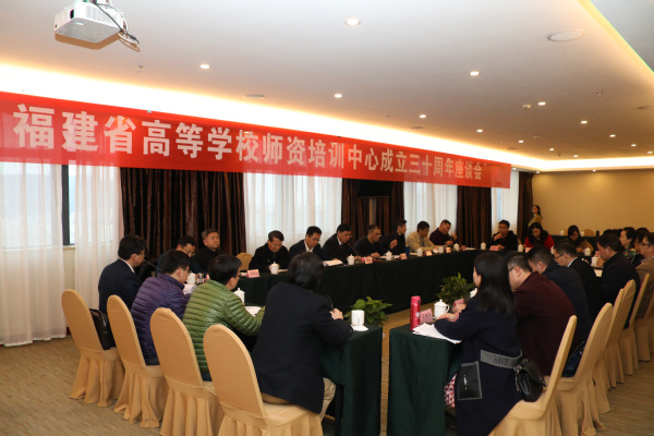 2018年12月28日,福建省高等学校师资培训中心成立三十周年座谈会在我校举行。福建省教育厅教师工作处处长杨振坦、副处长张承生,校领导李宝银、郑家建,山东省高等学校师资培训中心、安徽省高等学校师资培训中心、湖北省高等学校师资培训中心负责人和全省13所高等院校教师工作处、人事处负责人及学员代表参加了座谈会。