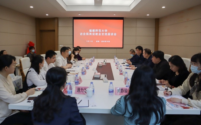 座谈会上,林月恩感谢福州软件园产业服务有限公司对此次“访企拓岗促就业”专项活动的大力支持,感谢福州软件园各用人单位长期以来对我校毕业生就业工作的关心和帮助。他表示,学校党委、行政高度重视毕业生就业创业工作,希望通过访企拓岗促就业专项行动,能够精准对接信息,下好就业服务“先手棋”,加强产学研教融合,出好校企合作“组合拳”,畅通就业渠道,搭建就业招聘“云平台”。谢在秀表示,软件园管委会将统筹推进“引才育才”项目,以人才池储备、培养“专家型”专家、课题项目推进等为抓手,以完备的服务体系,推动校企战略合作,加强人才、技术双向交流。