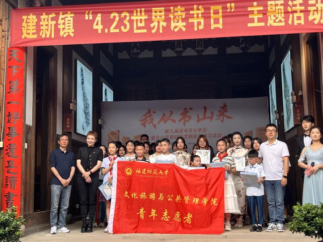近日,“我从书山来”第九届读书日分享会暨仓山区新时代文明实践讲习活动在仓山区台屿农家书屋举行。文化旅游与公共管理学院学生志愿者参加了活动。活动中,我校学生通过歌舞表演、乐器演奏、诗歌朗诵等形式,展现中华优秀传统文化神韵,诠释读书之美,营造“爱读书、读好书、善读书”的浓厚氛围。(文化旅游与公共管理学院)