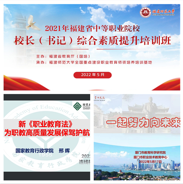 近日,由福建省教育厅主办,福建师范大学全国重点建设职业教育师资培养培训基地承办的福建省中等职业院校校长(书记)综合素质提升国家级培训班开班。培训采用线上线下相结合的方式进行,来自全省59所中职学校的校长(书记)参加了此次培训。我校网络与继续教育学院、职业技术教育学院党委书记李建华在开班式上致辞。