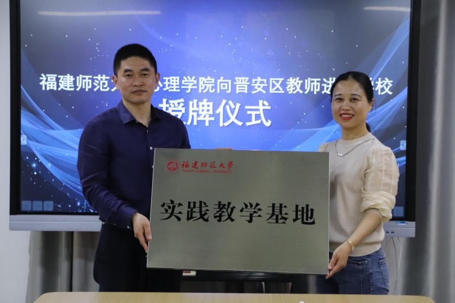 5月18日,心理学院与福州市晋安区教育局在晋安区象峰中心小学举行实习实践基地签约与授牌仪式。晋安区教育局党组成员、教育系统党委书记丁纪兵,晋安区教师进修学校副书记林素莺,晋安区教师进修学校副校长陈建铃,象峰中心小学校长陈丽清,心理学院副院长孟迎芳,心理学系主任孟现鑫,团委书记谢小芬等参加了签约授牌仪式。