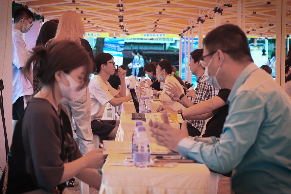 招聘会现场还同时举办2022年“互联网+”大赛寻找“创”伙伴活动,为有意愿创业的学生搭建展示创新素质与创业能力的平台,营造良好的“三创”氛围,促进创业团队跨学科融合,更好地实现创业带动就业。