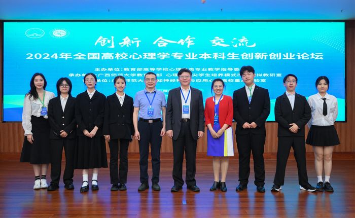 近日,由教育部高等学校心理学类专业教学指导委员会主办,广西师范大学教育学部、心理学拔尖学生培养模式改革虚拟教研室承办的“2024年全国高校心理学专业本科生创新创业论坛”现场展示阶段圆满落幕。本次论坛涵盖心理实验设计、现实问题解决、心理学产品设计、心理科普短视频四个分论坛,分为专家评审推选和现场准备与展示两个阶段。