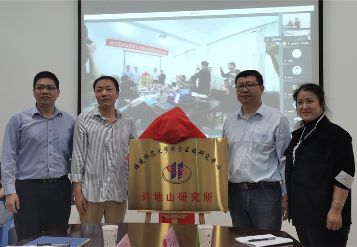 5月21日,闽台区域研究中心许地山研究所揭牌仪式暨第一次学术研讨会在我校仓山校区文科楼举行。文学院副院长周云龙,闽台区域研究中心副主任吴巍巍、副研究员陈伟达、徐秀慧教授,厦门大学台湾研究院副院长张羽,闽南师范大学闽南文化研究院安拴虎教授,漳州职业技术学院学报原主编陈统,研究所顾问许钢(台湾许南英曾孙,许地山侄孙)等参加了会议。研究所顾问卢咸池(北京台联名誉会长)、中国社会科学院博士生黄佳作等在线上参加了会议。