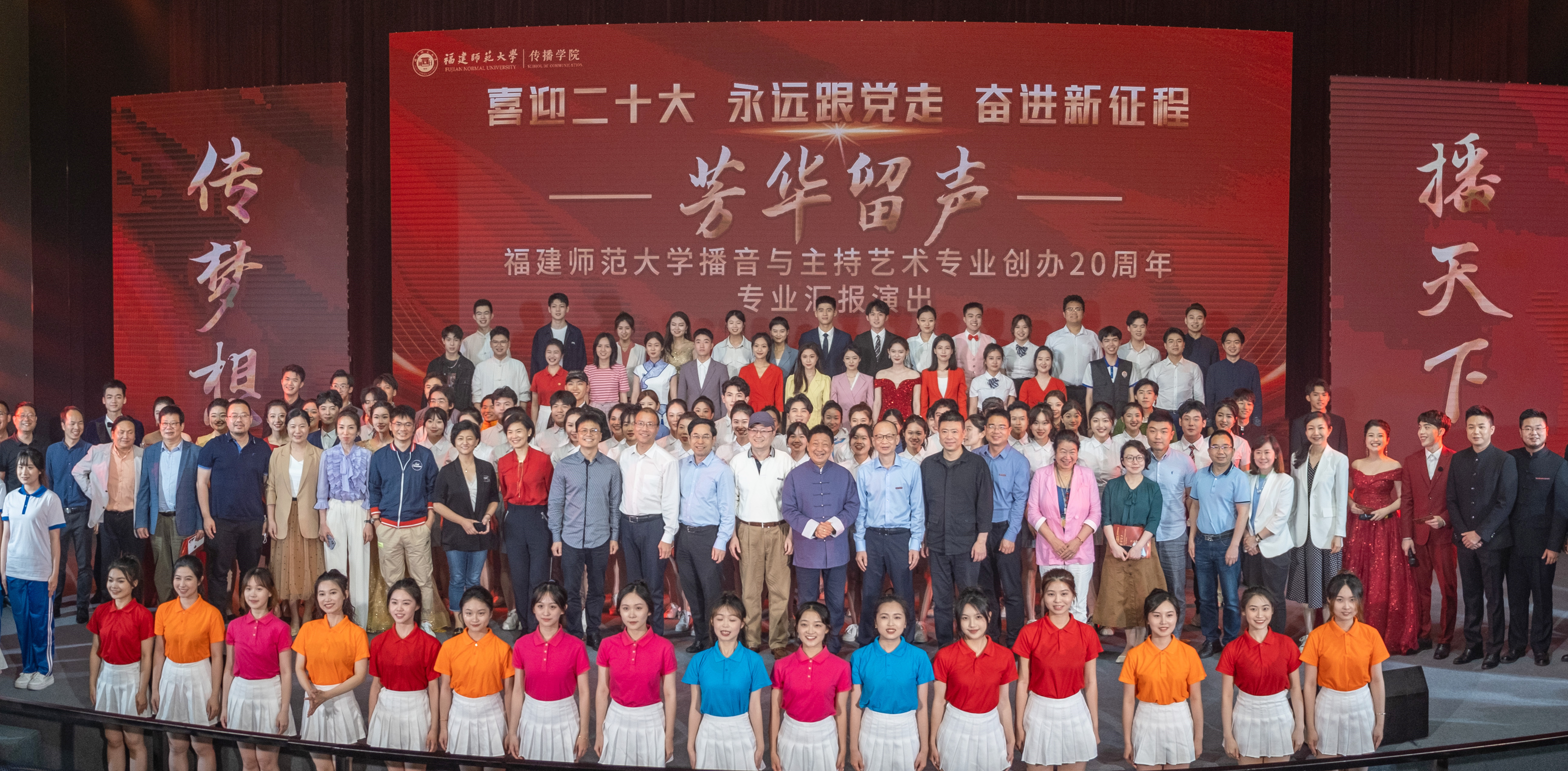当晚,在旗山校区星雨剧场举办了“芳华留声·喜迎二十大 永远跟党走 奋进新征程”专业汇报演出。校党委副书记陈晓红,福建省艺术职业学院原院长、我校播音与主持艺术专业创办人张锦华,学校有关职能部门、传播学院负责人,校友、企业负责人代表和师生代表共300余人到场观看。