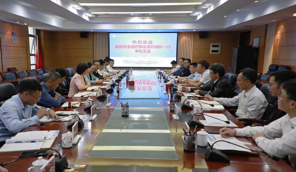 5月26日,莆田市委常委、组织部部长袁素玲一行来我校走访交流,校党委书记潘玉腾、副校长陈庆华,相关职能部门、学院负责人和莆田籍教师代表参加了交流活动。潘玉腾对袁素玲部长一行到访表示热烈欢迎。他指出,我校长期以来与莆田市有着良好的合作基础,希望进一步深化合作交流,开启新一轮更大广度、更高深度、更加务实的校地共建,促进双方在高质量、高水平、可持续发展上迈上新台阶。双方深入探讨了莆田市与我校合作项目的发展情况,并就人才培养、基础教育、科技对接、校企合作等具体合作内容交换了意见。