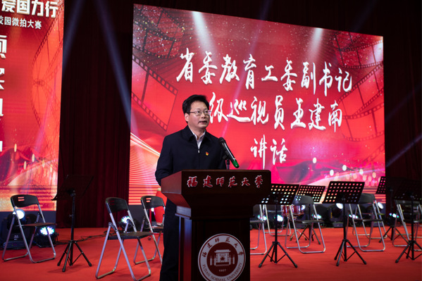 12月11日下午,福建省第四届校园微拍大赛颁奖典礼在旗山校区星雨剧场举行。省委教育工委副书记、一级巡视员、第四届校园微拍大赛组委会主任王建南,校党委副书记、大赛组委会副主任陈晓红以及省教育厅、校有关部处和学院负责人,第四届微拍大赛部分获奖作品代表共150多人参加了颁奖典礼。