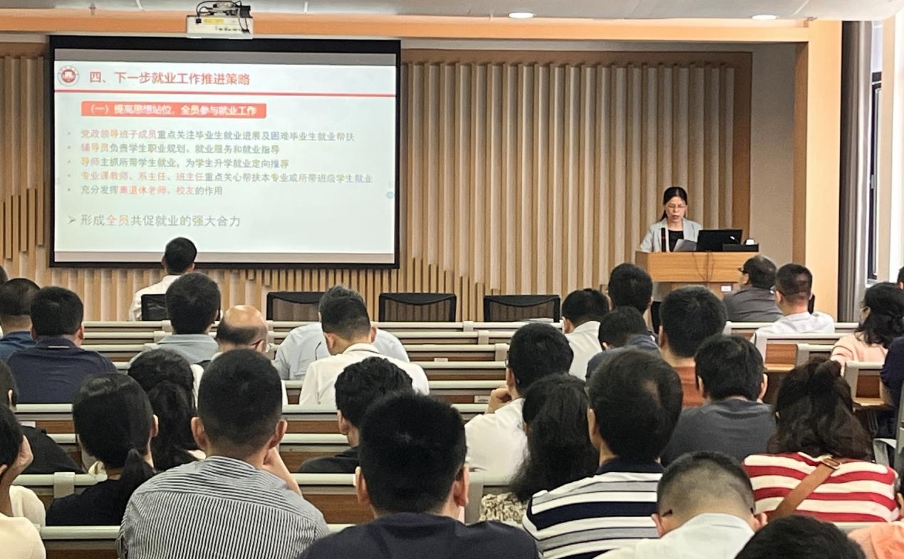 近日,地理科学学院召开2024届毕业生就业创业工作推进会。院党政班子成员、全体教职工参加会议。会议由院党委林翠容书记主持。会上,林翠容书记传达了全国、全省和我校毕业生就业创业工作会议精神,并就学院2024届毕业生就业创业工作进行了再动员、再部署、再推进。她介绍了学院2024届毕业生就业基本情况,总结了学院目前开就业工作推进举措,分析了当前存在的困难与问题。她强调要提高思想站位,全员参与就业工作;要精确掌握需求,积极开拓就业岗位;要强化服务保障,做早做实就业工作。(地理科学学院)