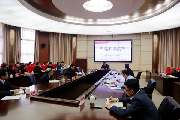 12月22日,经校领导同志沟通,应福建商学院邀请,中央“马工程”首席专家、我校原校长、全国中国特色社会主义政治经济学研究中心(福建师范大学)主任李建平教授到该校作学术报告,该校党政领导刘剑津书记、黄斌校长、吴访益副书记等和中层以上干部现场聆听报告,并设置线上分会场,听众共400多人。